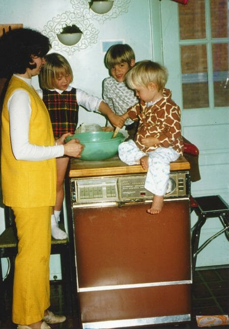 Why we didn’t wait until Dad got home to do it, I couldn’t tell you. It meant no disrespect for him; he’d obviously helped us buy them. But each birthday and Mother’s Day, we stood on a stool by the washing machine and made Mom close her eyes as she helped us put her gift in a box, cut the paper, fold perfect crisp corners, and put just the right amount of tape on all the seams. As far as I know, she kept her promise and never looked. She always acted surprised when she reopened them…